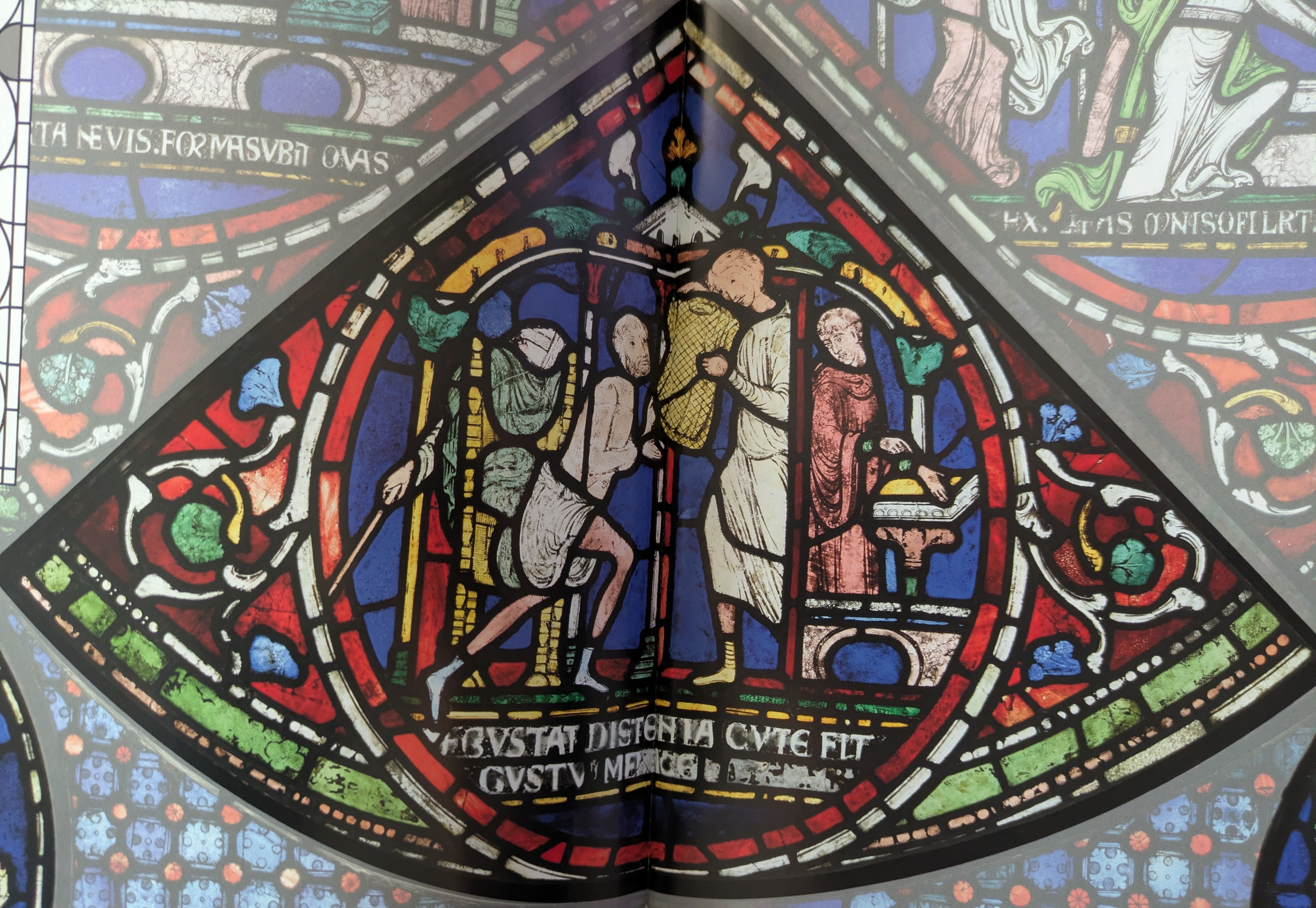 In the report he supplied to the Chapter in 1857, Austin Jr included two diagrams of window nIII. In the first, he noted how the panels were arranged in the window before he took them out. In the second, he showed how he rearranged the panels, with the goal, as he put it, "to bring into Harmony the different phases of the Stories illustrated".